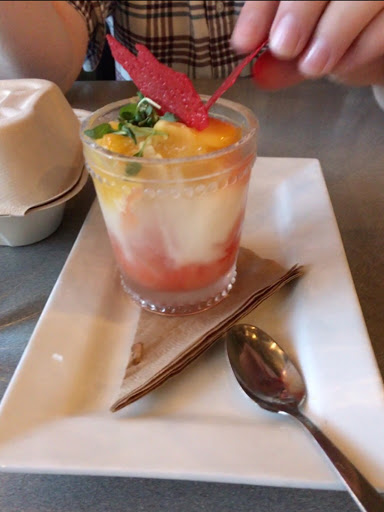 My boyfriend and my favorite restaurant in Indy, and its conveniently located down the street. The fact that they start your meal with a complimentary taste of bubbly to toast to your meal is reason alone to give them five stars. But they dont stop there. Their menu rotates frequently, so Ive never tried the same thing twice, and Ive absolutely loved every Ive ordered. My favorite has been the corn on the cob trio they served this summer, wrapped in popcorn crumbs with an aioli drizzle over each cob. Oh, please, take me back to that meal. Most recently I ordered off their devour Indianapolis menu. I started with Brussel sprouts that came with a side of grainy bread, moved on to the ramen and ended with their signature smore pot de creme dessert. Outstanding from start to finish. My boyfriend ordered the duckling and the bread appetizer, and that rivaled their pork belly entree in terms of his favorites.