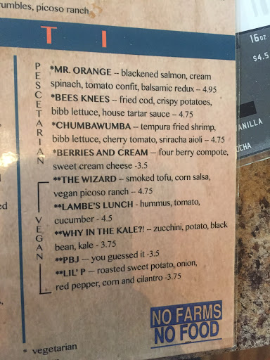 We eat here once or twice a week. Herbivores or Carnivores, theyve got you covered. Fresh ingredients that stand out. Pasta salad out of this world. Favorites include: Why in the Kale, Bees Knees, Chumbawamba and the Fancy Cuban.