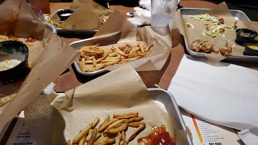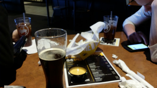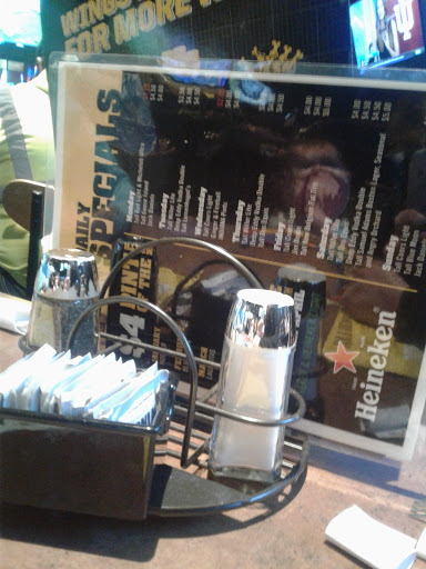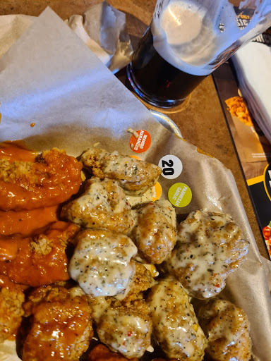 Love their wings, i walk in and order take out but the time to get order takes forever. Best to phone in order. I dont care for the loud sports bar style. Huge parking lot, but its right in the middle of a mall so easy to overlook.