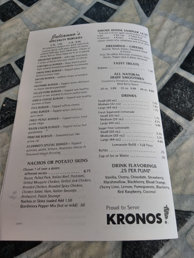 Juliannos is great the portions are huge my pulled pork sandwich was overflowing. My boyfriend 6 yrs love to eat there everytime we come to kokomo...5 stars