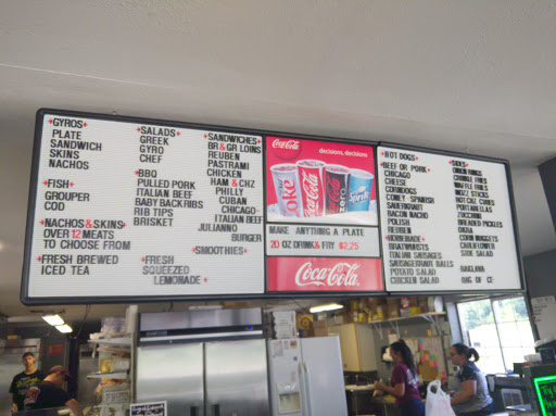 Went in for a quick bite and hit the place right at the lunch rush Ordered a beef corn dog for myself and a gyro for the wife The gyro was great eating The corn dog not so much being over battered and burnt on the outside Shame too :( Very unique place to eat though Going to give it another try soon