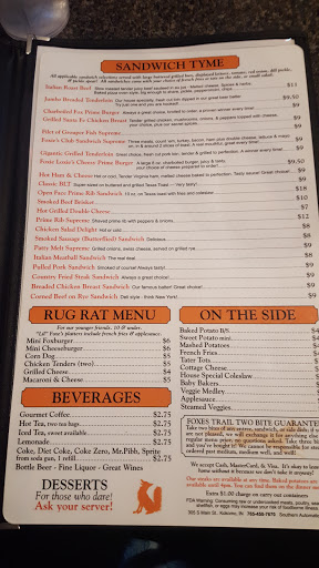 First time visit at the Foxes Trail in Kokomo, very roomy & not crammed packed. Great food with huge portions. Will definitely go back! Loved the chalk board & chalk in the bathroom stalls, no writing on the walls! We need that at Steel Parts Manufacturing!