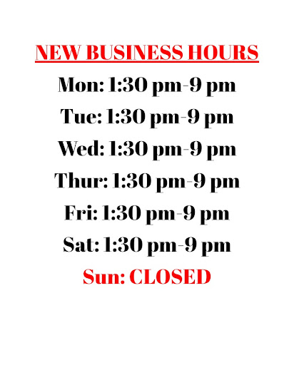| Working: | 11AM–9PM 11AM–9PM 11AM–9PM 11AM–9PM 11AM–10PM 11AM–10PM Closed |