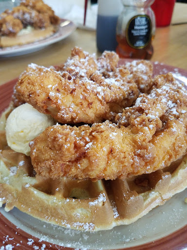 Great spot in downtown. We were taken by a local we were visiting and it did not disappoint. All four of our breakfasts were excellent and the service was as friendly as it comes. Any place that has chicken and waffles that good 24hrs a day should get 6 stars!