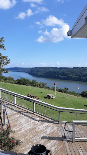 This is a very nice restaurant in terms of service, view and food! It is located in top of a large Cliff on the side if the Ohio River, with a view of a bend in the river and farms in Kentucky! The cool thing about the layout of the place is that every seat in the house shares the same awesome view! The food is okay, buy but not the reason you visit by any stretch of the imagination. The deserts are imported from a local culinary school and are always fabulous 5 star restaurant quality stuff! Everyone needs to eat here at least once, and maybe once a year as many do who pass Leavenworth Indiana on a road trip!