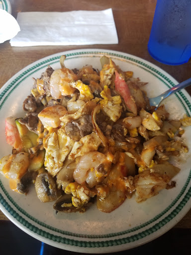 Excellent sushi! The "hibachi bar" is okay but there are a couple types of veggies I really like in my stir-fry that they dont have (but thats just a personal preference, they do have a lot of choices). There is a wide range of choices of hot food with Chinese and American options so the kids can have a slice of pizza while youre enjoying General Tsos chicken over fried rice. The cold bar has some offerings for making a salad as well as hard-boiled eggs (something I enjoy but generally dont see on buffets), fruit, pudding, and mussels and boiled shrimp. There are a couple choices of cakes, cookies, and 8 kinds of hand-dipped ice cream for dessert. For the price, theres no beating this buffet.