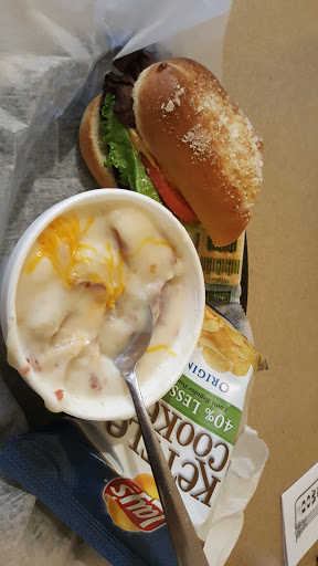 Had a grilled chicken pesto Alfredo sandwich. Delicious and quick! Very clean.