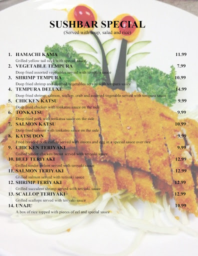 I love coming to the sushi bar, great service and quality of food all for an amazing price. Always clean and speedy service! I am a regular..and recommend this place to anyone who loves sushi!