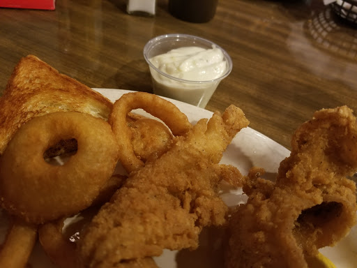 My husband and I went here with our four small children. The waitress seemed happy to serve us. She was very kind and knew the menu well. We ordered 3 kids meals for the the kids that would be eating (the youngest is still eating milk) and we both got the all you can eat walleye. The kids meals had so much food they could have split one meal. The pulled pork was outstanding!! The walleye was amazing. We also got Cole slaw, steak fries, baked potatoes and onion rings. The baked potatoes werent great but literally everything else was so good! Weve lived in Waverly for a couple years now and were wondering now why weve never gone here before. It was so so good! Service was excellent too! Well definitely be back.
