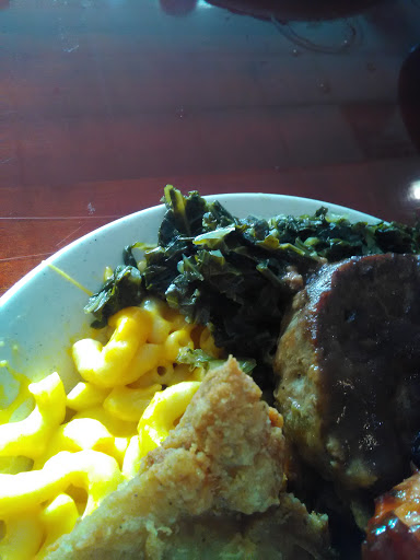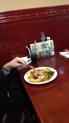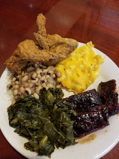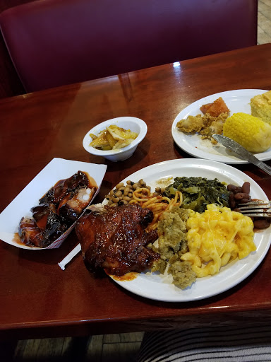 I got a Groupon for this place decided to give it a try. I went about 2 PM thinking I was going to miss the church rush, it was busy but I was able to find seating. Went to buffet and checked out. They had a lot of choices but a lot of the food was empty. I dont know if I had just missed a rush or what. As for taste, the rib tips were amazing! House made sauce and all. Chicken was salty. Sides were ok. I was hoping theyd be more homemade. The potatoes were definitely instant. I dont know if Id do the buffet again, but I wouldnt hesitate to go back for the ribs. I really enjoyed those! I do agree with a lot of the reviews the floor was sticky and you can feel your shoes sticking to it. Also it would be nice if they provided more napkins or maybe wet nap since theyre serving barbecue ribs, just an idea.
