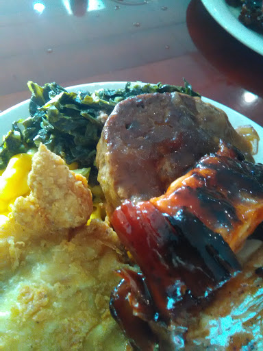 We were so excited about this place until we walked in. There was a worker sitting on the counter while another was running back and forth, grabbing food off the buffet. Food was cold, salty and ribs were tough and burnt. Mashed potatoes were salty as was the mac n cheese. Greens were too stems, dressing was dry and salad bar was wilted. Desserts looked old too. Employees stood against the wall laughing and staring at you as you got your food, very uncomfortable feeling. The girl from Kennys was taking orders as she talked on her Bluetooth and while snatching items off the buffet. The guy working the BBQ grill had a girl just standing there with him laughing. It was a very disappointing, not too mention expensive experience. I will not be visiting again.