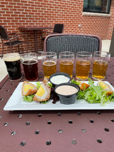 We stopped in on a whim and wanted to try some of their beers. We waited about 20 minutes for a table. We ordered a 6 beer sampler and an order of onion rings to start off. The onion rings were great. Maybe the best we had ever had. My wife liked the Foggy Loggy brew, which was the lightest on the list. I ordered a sample of the other 6 beers on the list. All the beers were pretty good in their own right, but my personal favorites were the Foggy Loggy, Beltaine, and Discombobulation Celebration. We then ordered a Reuben sandwich with veggie chips and a brew burger on a pretzel roll with french fries. Both were very good and made to perfection. The service was very good and friendly. The brewery is only yards from Lake Michigan and the decor resembles an old boat house. Overall a great experience. We will definitely go again.