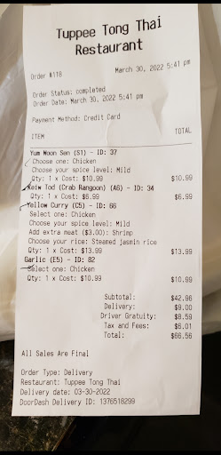 Tuppee Tong is simply the best Thai restaurant in Muncie. The food is consistently delicious and well prepared, the staff are friendly and Lind, and the atmosphere is not too bad.