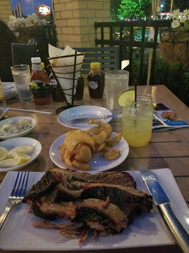 You can never go wrong with BBQ and Whiskey. Great selection of whiskey from around the world. I like their menu breaking them down into states and countries. I was there for a late lunch so not busy at all. So not busy I had to wait 10 minutes before flagging down the bartender to place my order although there were three wait staff walking around. The bartender at least was very helpful. I got the True style pulled pork. Sauce selections nice and even features a rotating flavor to keep things interesting. Pork was good but a bit dry. Their take on fries is interesting. A thick sliced spiral. Kind of a cross between a curly fry and a steak fry. They were good. Ill have to come back for the ribs and good looking desserts. Two large square fire pits outside with seating so would be fun on a nice night.