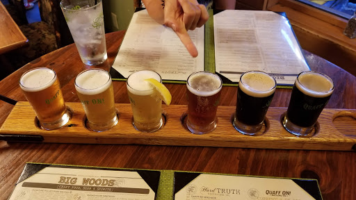 Great beer, kind staff, friendly atmosphere. I visited Big Woods Brewery the other day for my first time and had a very enjoyable experience. The waitress was very knowledgeable about the beer, the Spicy Bacon Ranch Burger was filling, and the restaurant has a refreshing character to it. Its not a huge place so you might not be able to get a table right away if its busy, but definitely check it out.