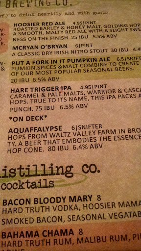 Way overpriced. Beer was mediocre, and 6 bucks a pint. I got the half rack of ribs on "special", which the daily board said came with asparagus and roasted potatoes, but actually came with canned corn sucotash and pasta salad. The ribs were terrible. I dont normally say much about restaurant food, but these were exceptionally dry and brand - not at all worth the $17 premium. My wife got the pulled pork sandwich, which was pretty standard. For as many great brewpubs and restaurants are popping up around Johnson /brown county, These guys need to step it up. Drive the 25 mins to bargersville and go to taxman brewing Co.