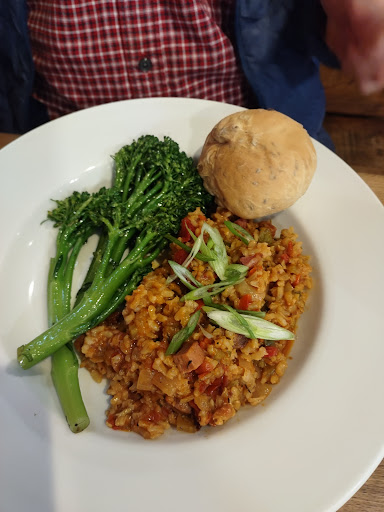 Quaint little restaurant that we expected to serve decent food but not the fabulous meal we had! We are vegetarians and it is so unusual to be offered a vegetarian choice as a special of the day. It was asparagus, red pepper, feta cheese grilled and topped on ciabatta bread with a drizzle of a dressing for dipping. It was fantastic. Highly recommend this restaurant when visiting Nashville, IN.