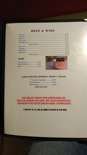 Its the only pizza I ever want I live in North Port FL. and this pizza rocks. I wish I could be there to eat one me and my dad never want to go back to New Albany to see family but we always want to come back to eat Pizza King pizza. Every time I want pizza I always say I wish I could have Pizza King.