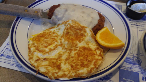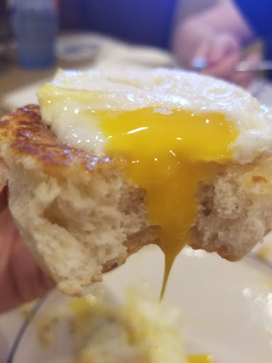 The guy who sat us was nice. The waitress had no personality. Not a huge pancake eater, but it was artificial syrup. From the deserts behind the glass I could tell they were a prebought/heat up type place, nothing made from scratch.