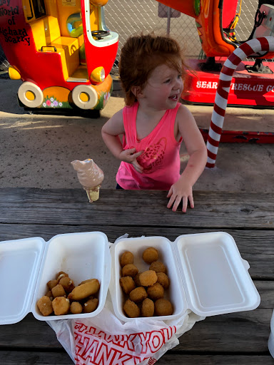 Great fried food that you can find at the fair. Ice cream too. Dip or soft serve. Kids can ride quarter rides.