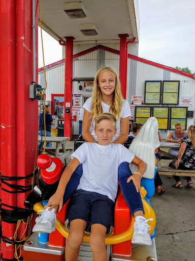 One of a kind. They have kiddy quarter rides (kind you see at stores for the pre k set). You can get almost any carnival food there (corn dogs, shake ups, fried twinkies). Their ice cream is good and reasonably priced. We did get small portions once but most of the time the portions are big. You can also get fun items like stuffed fantastic Franks, cotton candy, etc. I got a hamburger and fries and it was large enough for 2 meals. In restrooms here that I could see- portapotties were available. I love that they had sidewalk chalk and hoola hoops for kids to play with, too.