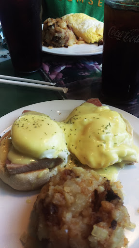 Fast friendly efficient service, large portions and pretty cool atmosphere. The sausage patties are homemade, not frozen patties most breakfast joints use. The breakfast tater smash stuff was awesome! You could tell the owner takes pride in this place, as he was continually looking at all tables to ensure beverages never went more than half empty and busser always made sure plates didnt pile up on the table. Continual table clearing makes me happy! Only criticism I can offer is to wait until the patrons are actually away from the table before flipping the table. The server put new silverware and plates on our table and we were still putting on our jackets and gathering belongings. Table should be fully wiped down and cleared before new items for next patrons hit the table. Makes you feel rushed out the door. Other than that (which wasnt worth deducting a star) everything was excellent. Ive worked in food and beverage for 14 years and this place deserves a great review. Giving kids a poker chip is a nice touch too! My son loved it! Will definitely be back!