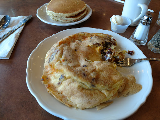 Not a place for small meals. You get a lot of pancake. Service was great, very nice and attentive. One of the other reviews mentioned not being fooled by the great pictures, but the strawberry pancakes I ordered looked picturesque, truly. Very impressive and very tasty. That said, the chocolate pancakes my sister ordered were so loaded with chocolate that she ended up saying two notable things: "Would you like some pancake with that chocolate?" and "I dont like chocolate anymore. Just in general."