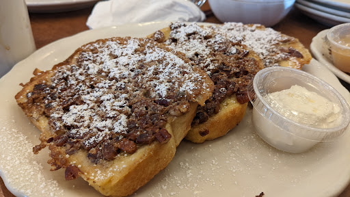 If its Saturday or Sunday and its already past 9am, be prepared for a decent wait. We are typically in line for 15 to 20 minutes, even if we are at the door or outside. While this is pretty good as far as getting you seated, this is normally accomplished by rushing visitors out the door. I get it. They arent making money by me sitting and enjoying my coffee. Even though I understand, it can be a little annoying when trying to enjoy my breakfast with my family. This is especially true when dropping $40 on breakfast. While I like the food, if you arent in a hurry, give Rosies, First Watch, Lincoln Square, Patachou, etc, etc a try. As you can see, pancakes are served all over the place.