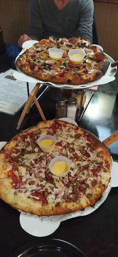 Simply the best wood fire pizza!! I recommend their rail bread and the highrailer meat with mushrooms! They also have homemade ice cream and homemade woodfire cheesecake!