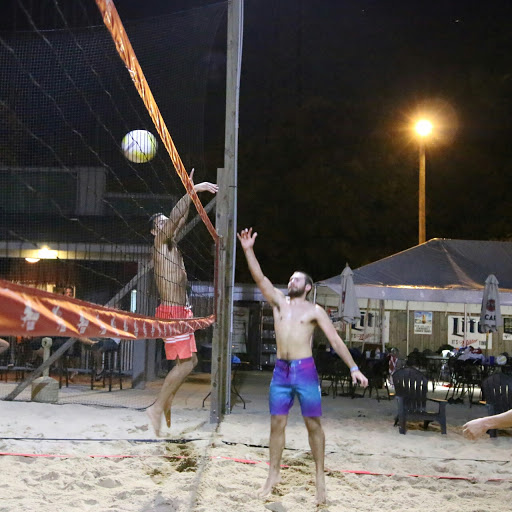 Has outdoor bar and sand volleyball courts. Numerous volleyball leagues and tournaments in the summer.