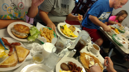 My wife and I had a pretty bad experience here recently. last Saturday we were in plainfield and always wanted to try this place out. Looked pretty cool from the outside and seemed steadily busy there. Well, we will never go back again. The only reason I gave it one star is because I had gotten an order of pancakes to go and those were surprisingly good. Other than that, horrible. When we got there, there was a 10 minute wait for a table of 2 even though there were about 8 tables open. but thats not a big deal. We sat outside since the weather was nice. In the time we waited for our drinks we saw 2 tables walk out cause they hadnt been waited on and said theyd sat there for about 15 minutes. that shouldve been the first sign. While we waited, one of the waiters there (maybe 16 years old) started making jokes to people about how the last table only left 2 dollars and how he felt rich from such a great tip. just being very sarcastic the whole time. He thought it was hilarious. No one else did. When we finally got our food it looked decent. They forgot half the order. We ordered loaded fries as an app and they came out at the same time our food did. I could have made better fries at home. The cheese was halfway melted, which you could tell they were just microwaved because the cheese came off completely in one waxy looking thing. My burger was ok. No flavor at all really but not awful. My wife said her burger was disgusting and only had a couple bites. Her pasta salad (which came out 10 minutes after the rest of the meal) looked old and was a weird texture and just could tell it was probably no good anymore. Neither one of us were wanting to even try it. One thing that really made us sooooo mad was towards the end of our meal. There was guy there eating by himself. He got his food then about 5 mins into him eating, the manager came up and asked if he would move seats so they could sit a bigger party at the table he was at. He seemed confused but said ok so the manager carried his food down about 3 tables from where he was. Maybe Im just being picky, that just seems very rude and unprofessional to me. When we got home both of our stomachs were upset and my wife actually starting getting sick from it. Were not overly picky eaters either. Mcdonalds is better than the burgers we got. Overall if you want good pancakes go here, other than that there is no way in hell id eat here again.