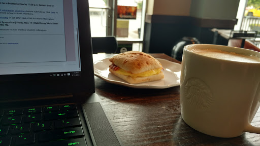 This Starbucks meets all my requirements for a place to get coffee in the morning. Theyre fast, pleasant, and not obnoxious. There are not a lot of tables here, though, so its not the best for getting in an hour or two of work in the morning.