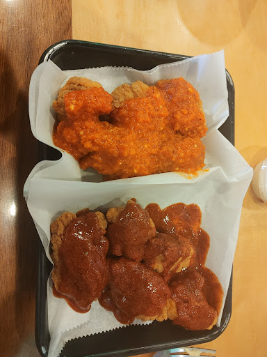 I come here pretty regularly, and I must say this is probably the best wing place Ive been to. The food is always fresh and the service is good, however, I would recommend not coming after 9pm. Every time we come at that time, we find the staff working the later shift are rude and the food is soggy and gross. Soild restaurant though.