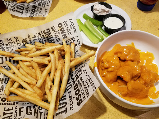 the pros: the wings are good, dressings are good, drinks are cold, and good variety. plenty of flat-screens (bar side), experienced waitresses. the cons: ordered a Mushroom and Swiss Burger presentation was decent for pub grub but the Hamburger was ruined by the hamburger itself. Bone dry, taistless, and straight from the frezzer. Ask for a fresh patty, medium well and you should be good. No, this town does not have a McDonnells. If youre into Buffalo Wild Wings this place wont let you down.