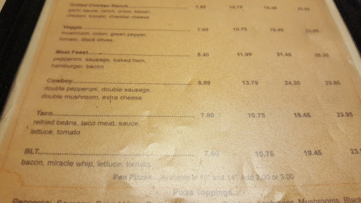 This is my all-time favorite Pizza King to eat! I have dined here many a times over many years, and their one of the original and best PKs out there. They are one of the few that serve the Cowboy pizza, which is an awesome tasting, very thick and filling pizza with double toppings. The one-time Mayor of Rushville even worked here making pizzas, ha. This is a long established location, that inside has not updated in probably 30 years, but hey, that 1970s wood look is always in fashion, and barely noticeable once the delicious pizza arrives. They have phones at each booth you pick up when you want to call the kitchen and place your order. That was high-tech 40 years ago, and is still cool and nostalgic today, ha. I sometimes drive here from Shelbyville, right past the PK in Shelbyville, just so I can get good service and that great Cowboy pizza that Shelbyville has no clue how to make or what it even is since it is not on their menu. I even explained to them how to make it and 2 times they tried and failed, guess they need to see it made in person to learn, but anyways, Rushville PK is great! They also have various subs and other pizza type foods, but their famous for pizza. The supreme, with no onions, is my 2nd favorite behind the Cowboy. If you have tried other PKs and not been happy, maybe you should try this location, as its one of the best! There is parking on the street and in their parking lot across the street.