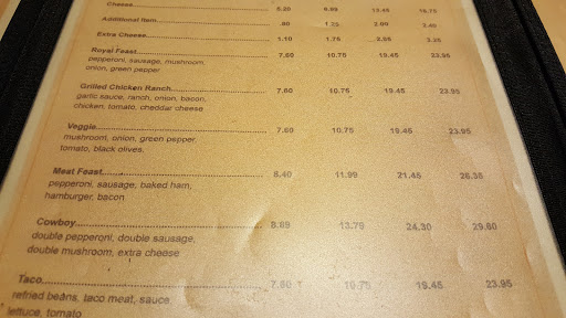They employees are rude the messed up on my pizza and tried to charge me more money on replacement ordered a 8 in royal feast two much sauce on first with extra cheese on it gave me credit for new one got new one half pep and sausage and other half royal and extra cheese and wanted to charge me more for half and half