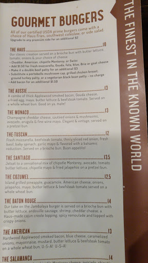 We always have amazing food and fantastic service at Burgerhaus!!! Definitely recommend the Monaco, Santiago, and Cozumel. I do get all my burgers with a mushroom cap in place of a beef patty. The gourmet fries are to die for, and the beer selection is superb. LOVE this place!!!