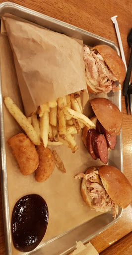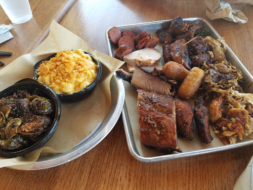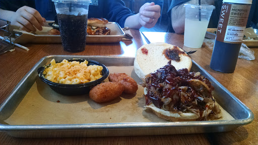 Servers are very friendly & nice. Even swapped out some side items that I didnt like but overall their food is mediocre @ best. The pulled pork was dry & flavorless, the brisket burnt ends taste like they had been sitting under a hot lamp for days & the mac-n-chz is absolutely terrible. Their spicy brussels are good & the memphis wings are ok. If u want good bbq I suggest u go elsewhere.