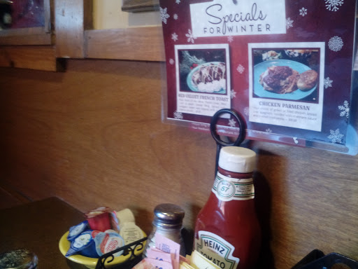 Our waiter got us our drinks(got them wrong). He was yelling through the kitchen window at the cooks then proceeded to go in and out of the kitchen and everytime he came back out of the kitchen hed look at us then go back and to yelling and going into the kitchen so we finally got up in left! The food isnt even that great and they werent busy at all the parking lot had around 5 cars. Finally got up and left! Dont go, go to Bakers Square its so much cheaper and the food is fantastic and cheap!!
