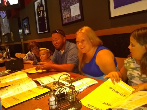 We sat down and everything was going well the waitress took our order and everything was great and then we waited and we waited and we waited for almost 45 minutes I finally told my waitress that I wanted to talk to a manager because the people that came in 20 minutes after we put our food order in got there food before us I asked to talk to a manager so I watched my waitress look for a manager for almost 5 minutes she finally finds one and the manager miraculously had our food in her hands I asked this young manager why it took so long for our food to come out and why the people that were here after us got there food first she said and I quote "well mama but some times it takes a longer time to cook the food" I have worked in restaurants for almost 15 years a short time of that was at buffalo wild wings and I know how kitchens work and if your having an off night thats fine it happens but dont send out this GIRL she looked like she was 15 to tell me that they were just cooking my food