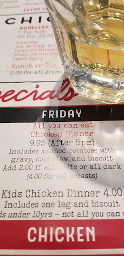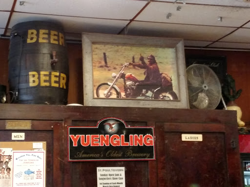 Definitely off the beaten path. Small Town bar and local gathering place. Might be the only one. Limited menu of course. Food was not bad. Had a burger and fries. Just okay. Wife had fish. A little better. The big surprise was the BBQ chicken wings. At 35 cents each it was a good deal. We dont drink but like to try new places to eat. Its a cool little bar and probably hopping on weekends. And some kind of weekly songwriting contest. Might be fun.