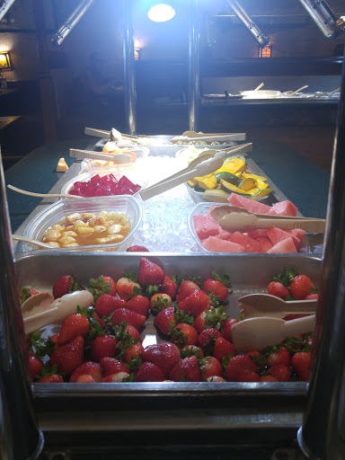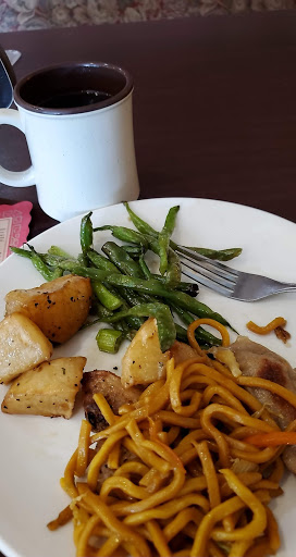 Went at 1pm on a Thursday. Food was hot and well stocked. Food was flavorful. Seafood delight shrimp was mushy, however. Decor needs serious upkeep. Garden hose dangling from ceiling tile by wall. Huge pile of broken/delapitated chairs against same wall. Just take them to the dumpster! Booths are coming apart at the seams. Questionable table decor...light sheath has a hole punched in it, paint flaking from dispensers. ALOT of chicken options...not alot of beef options.
