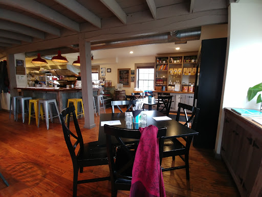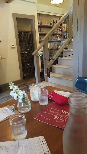 This place is good at first until you get to know how things are done. All the sandwiches and salads are made ahead of time. Parking is a pain, especially when Greeks Pizza opens. The tables are so close together, you have to climb over people to get around. The husband thinks it is a market that happens to sell food. The wife thinks it is a restaurant that happens to have a market. They used to serve freshly brewed sweet and unsweetened tea. Then they just served unsweetened tea. Now, you have to buy bottled tea. Their dinners are even worse. They only served half a spring roll. The chicken and almost raw and had no flavor. The tart was so tough, you had to use your fork or knife like a chisel. For right now, it is something new a different in Westfield. When people realize they are paying $8 for ham placed on bread with a little Brie, and the chicken salad is dry and has flavor, people will start going elsewhere. The owners do not like to hear criticism so after posting this, I know they will not allow me in the restaurant. The only reason I did not give them one star, is the fact the the market has several good local products. If you want to get to the produce, you have to push your way through two table and the people sitting there.