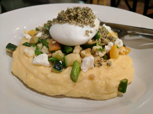 I really enjoyed everything about this restaurant. The location is great, the ambiance is enjoyable, and the food was delicious. Service was friendly but not invasive of my personal space. I enjoyed the small seasonal menu. I enjoy a good brewed iced tea, and theirs satisfied. The polenta I had for dinner was delicious and filling. Ill definitely be back again to try different items on the menu.