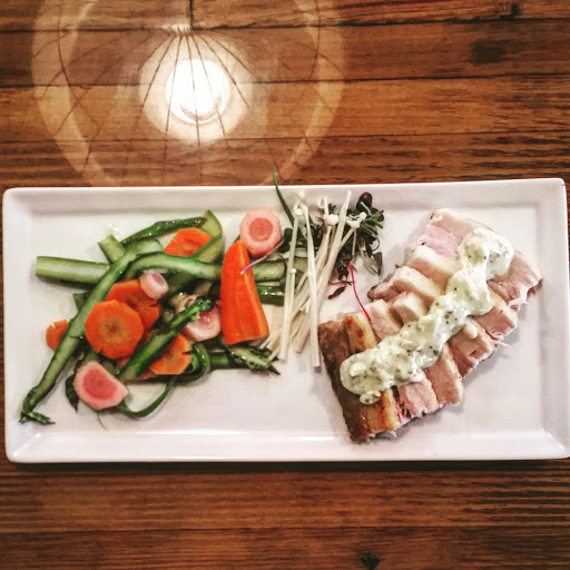 Excellent and uniquely prepared food, good portions on the entrees, friendly service from Jordan and other staff, enjoyed sitting outside on the patio. Very accommodating of GF diner. The menu is not extensive, the excellent preparation and quality is reflected in the prices. Appetizers (charcuterie board and smoked fish board) were wonderful but the amount of food on them was small for the price.
