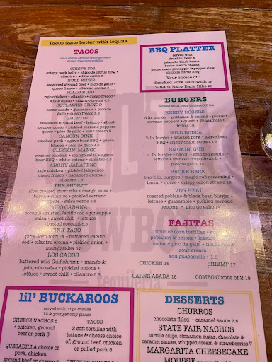 The Salty Cowboy is an interesting mix of BBQ and TexMex items. I enjoyed one of each of their fish tacos. The fish was battered and fried, topped with nicely paired flavors from red chili sauce and pineapple, to coconut. The chips and dip appetizer was an excellent way to try their multiple salsas, queso, and guacamole. My wife had a burrito that was very large and easily the best value at the table, as it could have fed two of us. Overall, our meal and service was great. The food was hot and well prepared. Our only shock was the prices. $5.50 for 1 taco is a little extreme. For 2 adults and 2 kids under 5, our bill with tip was right at $70 and we skipped the adult beverages. I will come back but not very often.