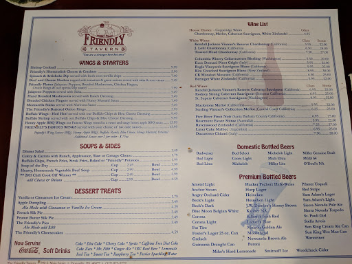 "Friendly" is the perfect name for this tavern. This is our go-to spot for a casual meal or for meeting up with friends. No one under 21 is admitted because they do not meet the silly Indiana rule regarding separation of the bar from the restrooms! Thats actually a plus for us. Favorite things to order - the wing platter, and the burgers.