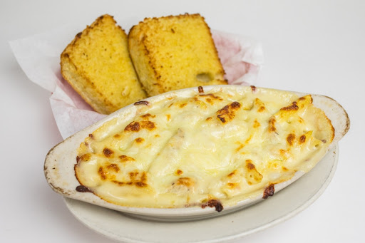The garlic bread was good but we waited at least an hour for our pizza (the only reason for any stars at all). We ordered a large pizza half without cheese, the waitress came after a somewhat long but acceptable wait time and said that the kitchen misread her order slip and put cheese on the whole pizza. We watched a second episode of Americas got talent on the tv and the pizza finally came, it was overly greasy and nothing spectacular. The best part is the bill was 24 dollars, they took nothing off until I complained.. Then they took 3 dollars off! What kind of management do they have? Not going back, there are much better pizza places in town! Place was very cold, bench seats where uncomfortable. Dont waste your time!