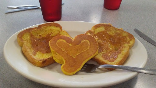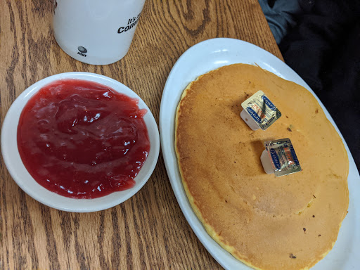 One pancake is more than enough--delicious! Ask about their special pancakes; depending on the time of year/availability they have raspberry rhubarb, peach, pumpkin, and my personal favorite--banana nut. Family owned, great service, very friendly, strong local following. A little bit outdated and worn interior but that just adds to the charm of the place. Truly is Ames best kept secret. Overall amazing place.