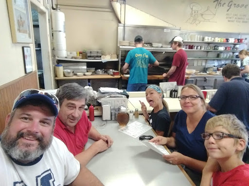 The Grove Cafe has an excellent small diner atmosphere, mostly because it is a very small diner, but also the employees give it that feel. I havent tried much of their lunch foods, but they really shine on their breakfasts. The pancakes are some the largest Ive ever seen, and coupled with their homemade syrup, you cannot go wrong. Ive got a fairly large appetite, but one of those cakes and 2 eggs will put me out hard. I highly recommend eating here when you can.